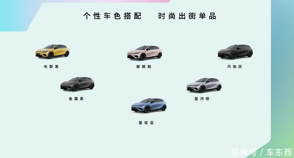车漆颜色方面,零跑汽车为零跑Lafa5带来了两个全新专属色——电掣黄、风驰灰,还提供多款个性车色。